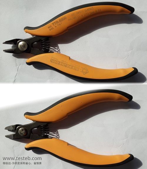 TTR 5500鎢鋼剪鉗:半齊平,橢圓頭斜口,剪切能力—軟線2.59mm、中等硬線2.0mm、高硬線鎳合金彈簧鋼絲0.8mm