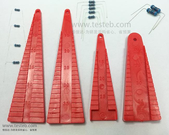 U1030二極管成型板用于把電阻、色環兩邊引腳折彎L type直角成U型,適用于1/8W、1/4W、1/2W、1W、2W、3W、5W電阻整形,即寬度在10mm~35mm,是DIY或小批量研發樣板元器件彎折造型好幫手。