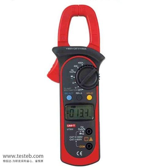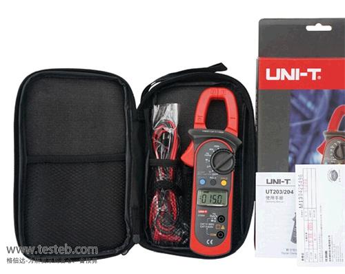 優利德UT203交直流數字鉗形表,具有交直流電壓、交直流電流、電阻、電容、頻率、溫度、連通性和二極管測量功能,UT203鉗型表是一款全量程的過載保護電路,功能齊全、性能優異的電子電工儀表。