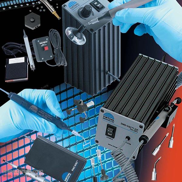 Virtual V8400真空吸筆帶有吸力強勁的SMD-VAC-HF真空泵,可產生達10英寸汞柱, 2.3升/分鐘流量吸力,配套VCS-9-B吸筆頭套裝,用于吸取晶片、芯片等平面器件,最大可吸取220g重量物體。
