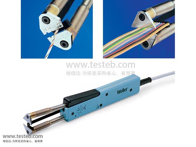 Weller T0052503299N WST82 KIT1電熱剝鉗套件一包含平口剝線刀頭及三孔刀片,可剝扁平電纜排線和圓形導線,通過連接80W功率的威樂焊臺WSD81或WT1主機來控制溫度,可調范圍50~450℃,根據不同的絕緣材料來調整。