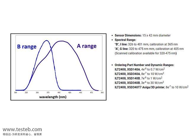 | ILT2400, XSD140B | 326-401 nm | 7e-8 ~ 1 W/cm² |