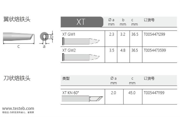 | XTGW1烙鐵咀 | 2.3 mm | 3.2 mm | 36.5 mm | 翼狀烙鐵頭 | T0054471299 |