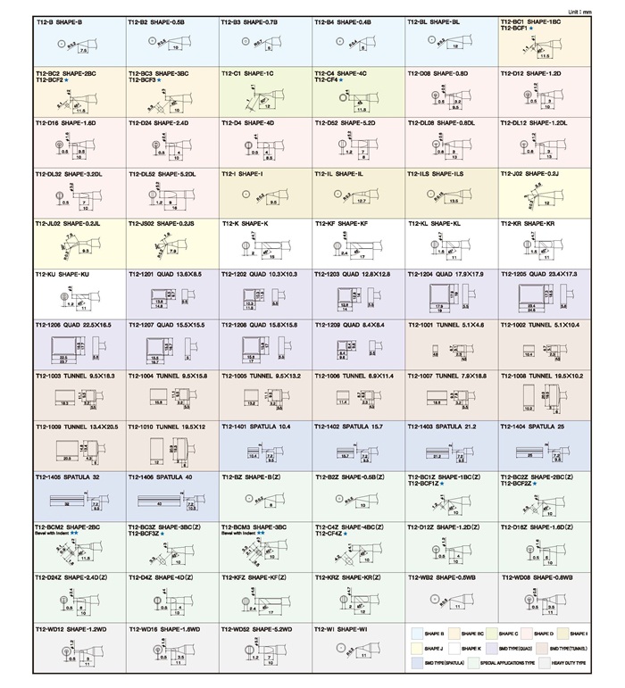 | B型圓咀或圓錐形 | T12-B烙鐵頭 | T12-B2 | T12-B3 | T12-B4 | T12-BL |
