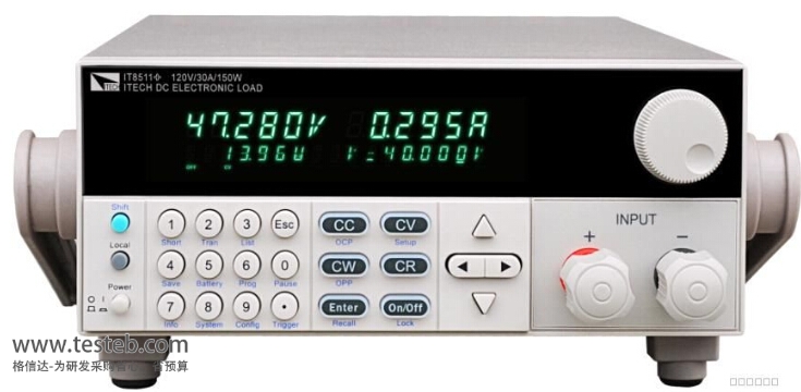 ITECH艾德克斯IT8511電子負載120V/30A/150W直流電子負載內建電壓1mV,電流0.1mA高分辨率和高精度的測量電路。IT8511直流電子負載具定電壓CV,定功率CW,定電流CC和定電阻CR模式, 遠端測量, 短路測試, 電池測試以及動態測試多功能,滿足多元化的測試需求。